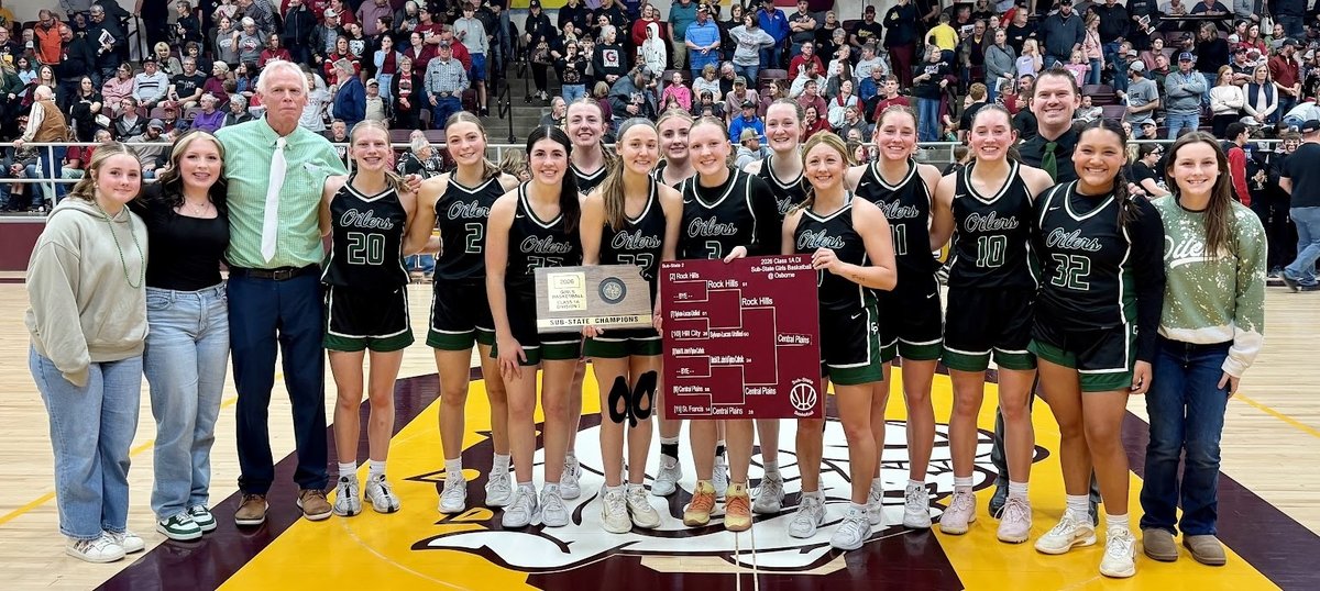 OSBORNE — Red-hot twin sisters Emery Siemsen and Aevyn Siemsen spelled double trouble combining for 47 points to spark the Oilers past Mankato Rock Hills 61-38 in the 1A Division 1 Osborne basketball substate championship game.